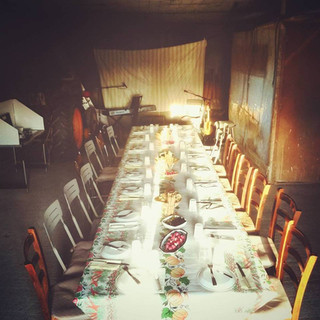 Ça c'était du 28 août au 1er septembre. On a soufflé un peu. Et le 1er du mois, nous avons rejoint les grands-parents et la grande tante de Julien à Mondragon, village non loin de Pierrelatte. Depuis qu'ils sont à la retraite, Mamie Marie et Papy Daniel voyagent souvent en camping car. Là ils sont partis pour un tour de France eux aussi, mais sur plusieurs mois. Comme on leur avait annoncé qu'on pouvait être de passage chez Ginette, la sœur de Daniel, ils ont programmé leur étape en même temps que nous. Et là, encore une fois, c'était royal. Ginette avait tout préparé pour recevoir une vingtaine de personnes à la maison : de la famille, des amis, des voisins. Pour accueillir tout ce beau monde, on s'est installé dans la grange à côté du tracteur (que de lieux insolites ^_^). Comme toile de fond on a installé le paravent confectionné par Marie spécialement pour le camping car. Papy la Bricole nous a aidé à tout mettre en place. Et le soir venu, pendant le délicieux repas partagé, nous avons joué. C'était l'occasion aussi pour moi de revoir des amis lorrains ayant déménagé dans la région, après plus de sept ans de séparation (ou peut-être neuf en fait...). Heureusement que Facebook maintient quelques liens pour rester à jour dans les vies de chacun et de renouer quand cela est possible. Ce concert du 2 septembre à Mondragon, c'était justement l'occasion rêvée !