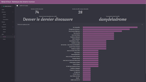 D’ailleurs, notre super modo Truelle s’est amusé à développer cette app’ pour connaître nos statistiques lors de nos livestreams musicaux ! C’est trop chouette de savoir quelles chansons vous demandez le plus et qui participent. Voici quelques statistiques intéressantes comparatives entre 2023 et 2024 (cliquez pour agrandir) :